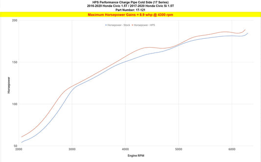 HPS Intercooler Charge Pipe Cold Side, Black, Honda 2016-2020 Civic 1.5L Turbo, 17-121WB